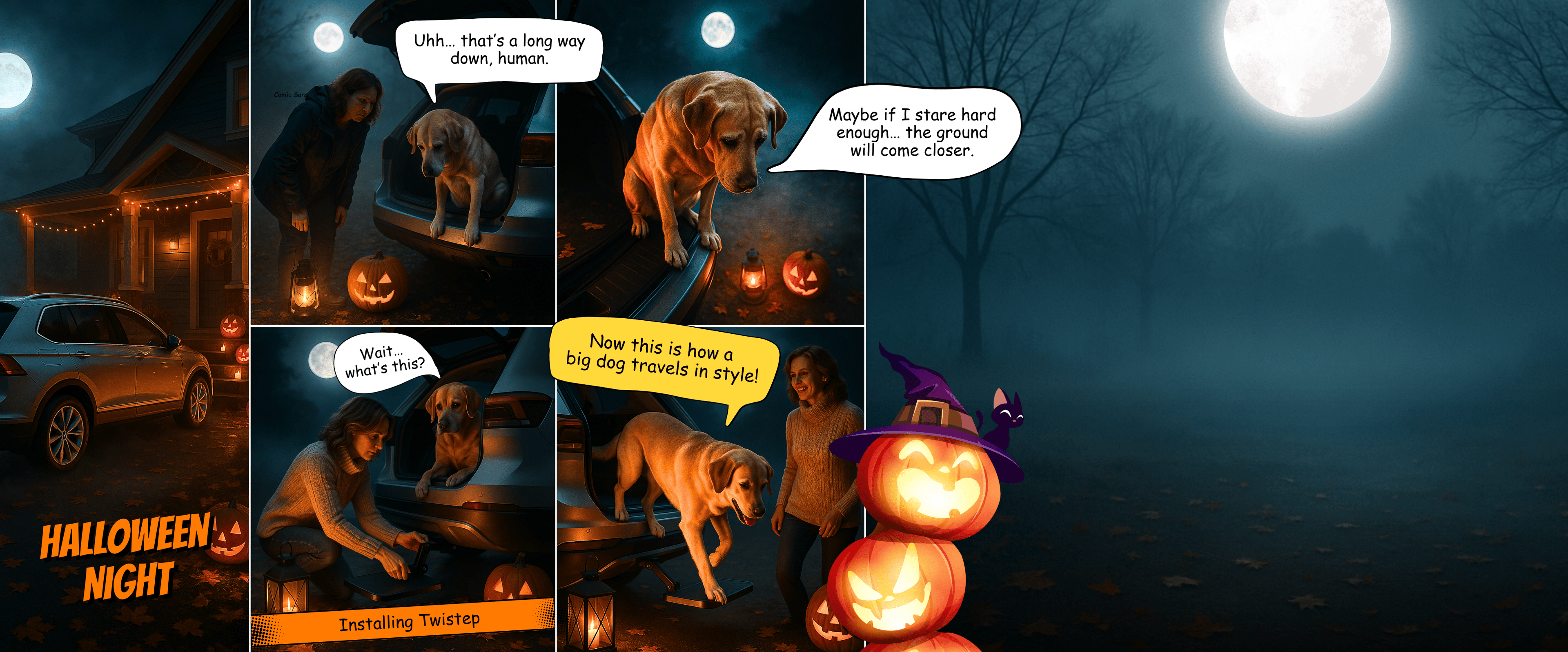 Really pleased with this product. We drive an FJ Crusier and have three Leonbergers (largest is 145lb). In the past we've tried dog ramps -which sort of worked, but were slow to use and cumbersome. This Twistep is great, you just pull the handle up nudge the step and round it swings. Super easy! It'd be nice if they put a reflective strip on the edge-left out its a bit of a bump hazard.For me the only drawback was I also used the hitch for my bike rack. After months of swapping between them I finally modified a hitch splitter to allow both bike rack and Twistep to be mounted simultaneously-it works great! (If only Heininger would offer modified hitch splitters as an accessory).