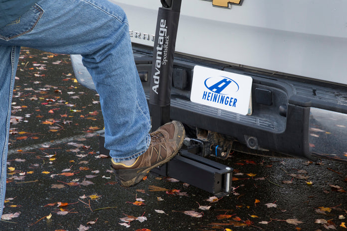 Most Heininger racks offer a tool-free, quick installation. They slide directly into your hitch receiver and secure with a pin or lock.