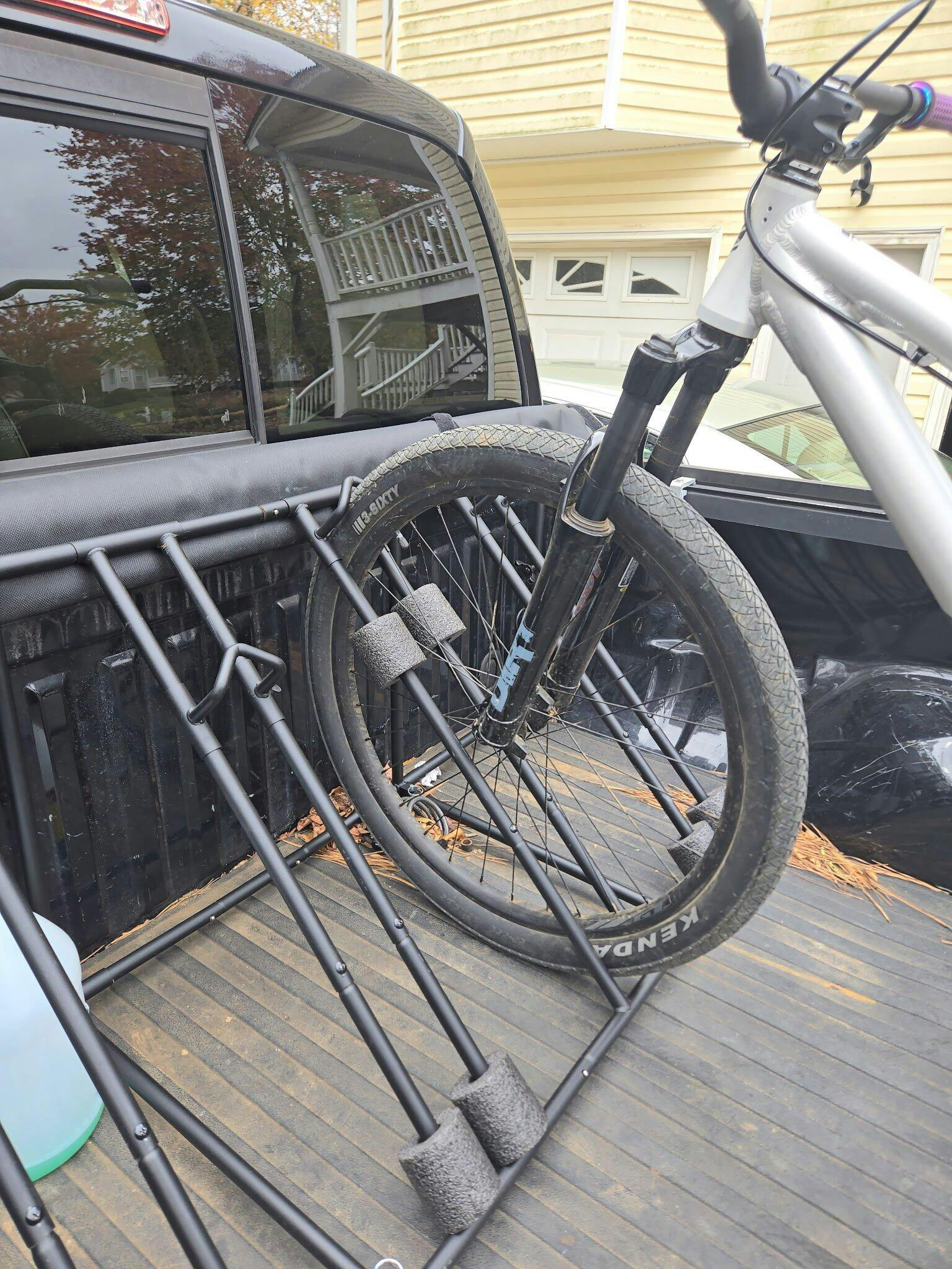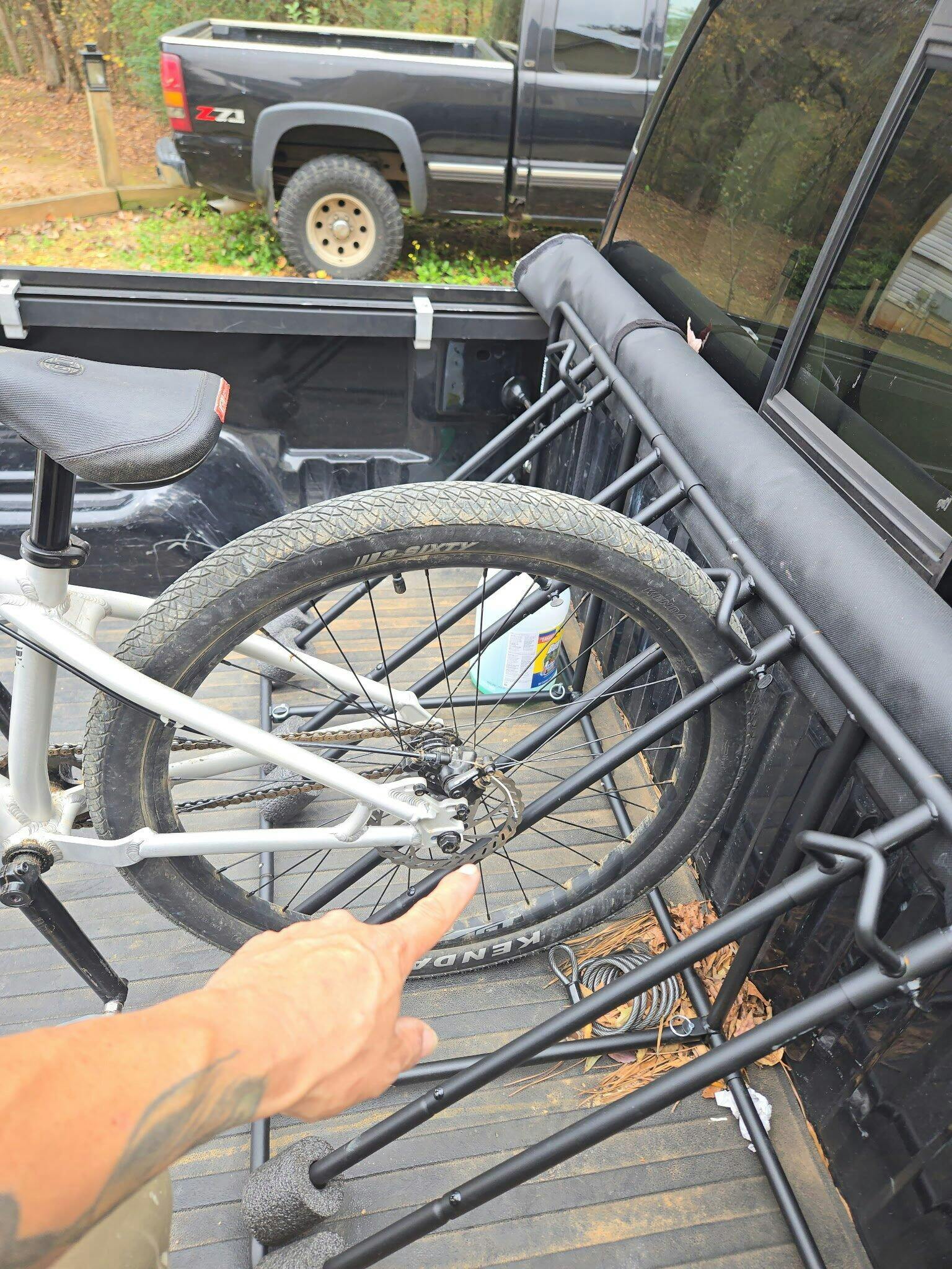 – When using this bike rack in your full-size truck bed there can appear to be a gap in the middle section that sits nearest to the tailgate. There is a trick to closing this gap that does not require an additional spacer.