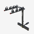 Made of heavy-duty steel construction and weighing 50 lbs. the corrosion-resistant black powder-coated finish ensures a long life. The folding carrying arms simply rotate out of the way when rack is not in use and the glideAWAY2 bike rack holds up to 150 lbs. The glideAWAY2 fits both 2" and 1.25" receiver hitches.