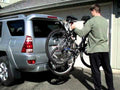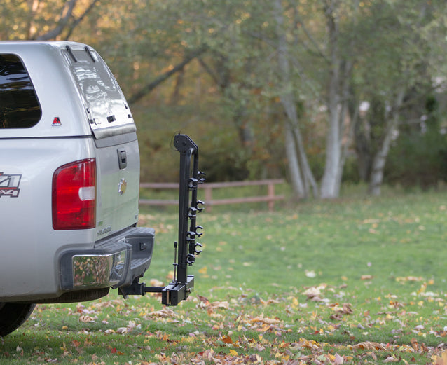 The design allows for the bikes to remain on the rack while loading and unloading your gear or groceries in the rear cargo area of an SUV or bed of a pick-up. This patented product allows you to swing the rack out and away up to 23" giving you plenty of room to access the rear of the vehicle. Simply and easily load 1, 2, 3 or 4 bikes on the glideAWAY2 in the Advantage® saddles with extra-long straps that hold the bikes securely without scratching the bikes finish. The rear mount design eliminates overhead lifting and increases fuel economy when compared to roof-mounted bike racks.
