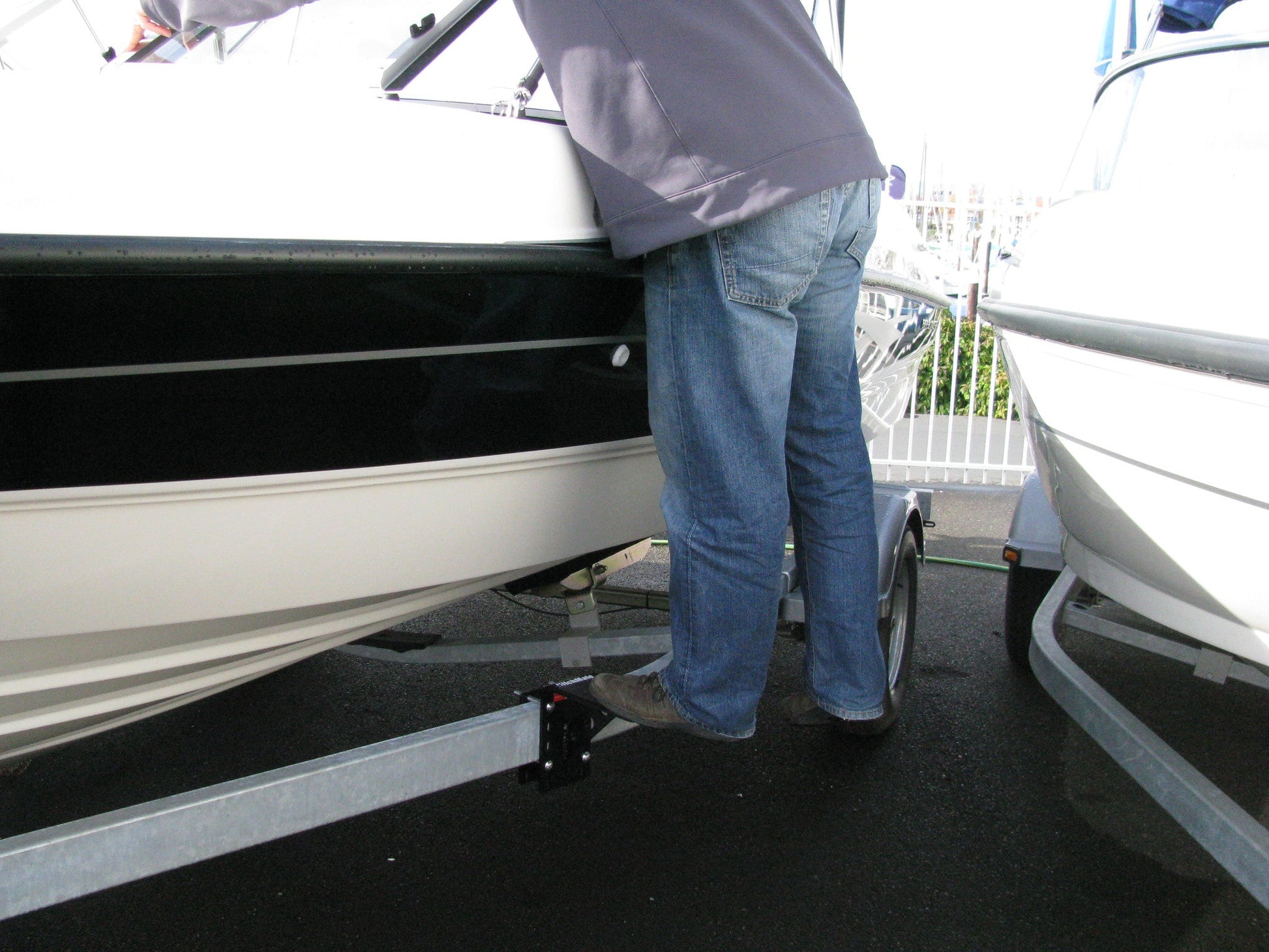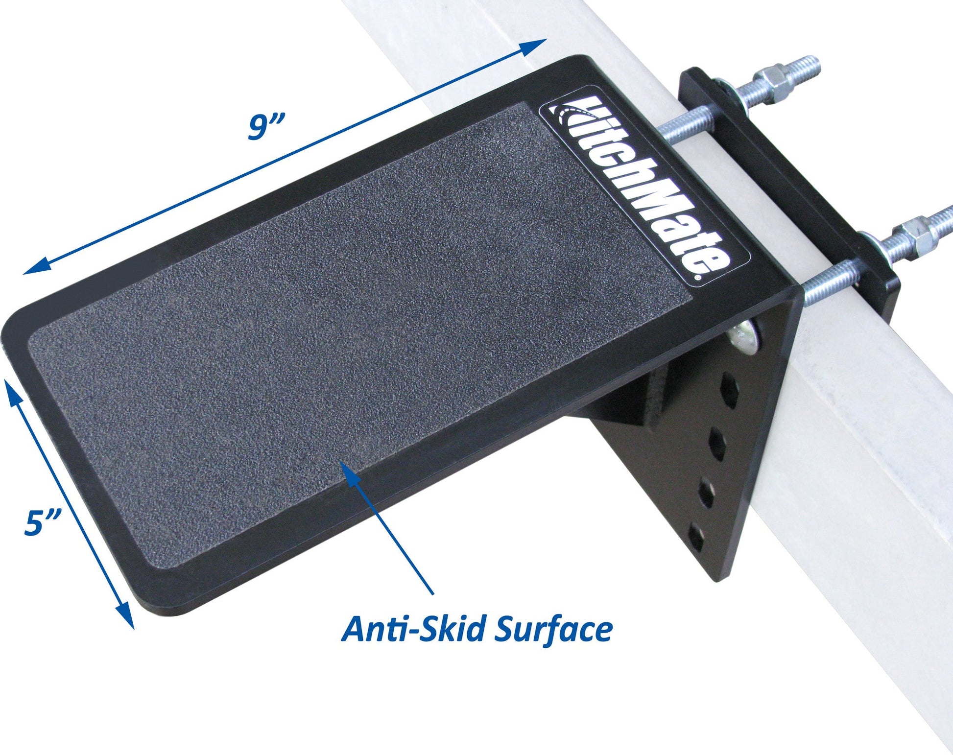 Access your trailered boat with the Trailer Step. Mounts on your trailer frame or tongue creating a versatile step. Made of powder coated steel with a non slip 5-inch platform. Mounts fit up to a 3-inch x 5-inch trailer frame. Includes mounting hardware. Non-slip step surface. 5-inch wide step. Powder coated finish.